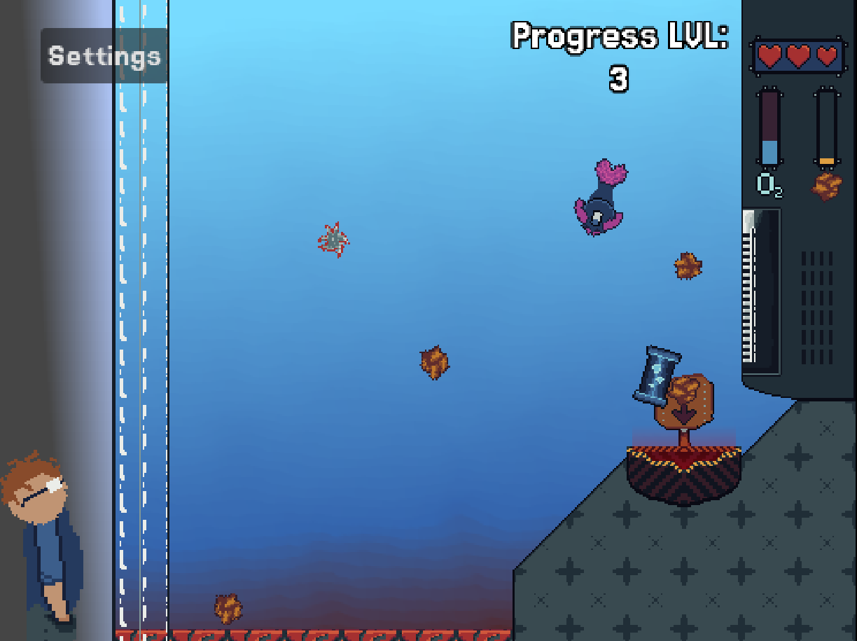 Your survival depends on keeping the water filter running. Fuel pellets occasionally fall from above, and it's your job to collect them and bring them to the filter before the water becomes unsafe. Manage the limited resources of your little world and keep the system alive.